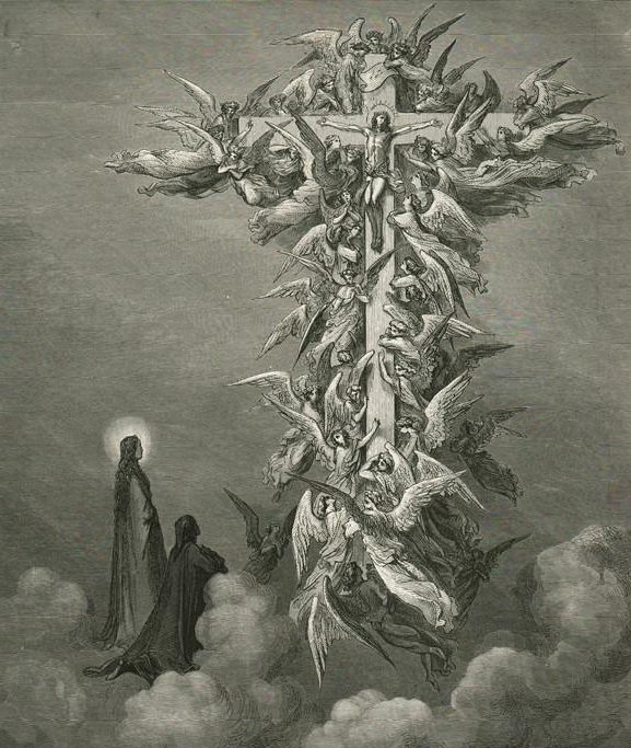 El primer verso es muy significativo para el viaje que Dante está a punto de iniciar acompañado por Virgilio (su maestro). El primer terceto de esta obra de literatura universal nos explica que tiene treinta y cinco años en tanto que la esperanza de vida era de setenta en el siglo XIV y añade a ello que «se encontró en una selva oscura». Es una descripción claramente alegórica de su situación personal y es a partir de aquí que el libro o poema nacional italiano se decanta por muchos factores por recorrer el Infierno, el Purgatorio y el Paraíso: es el recorrido de nuestro mundo interior, como hace toda obra universal.